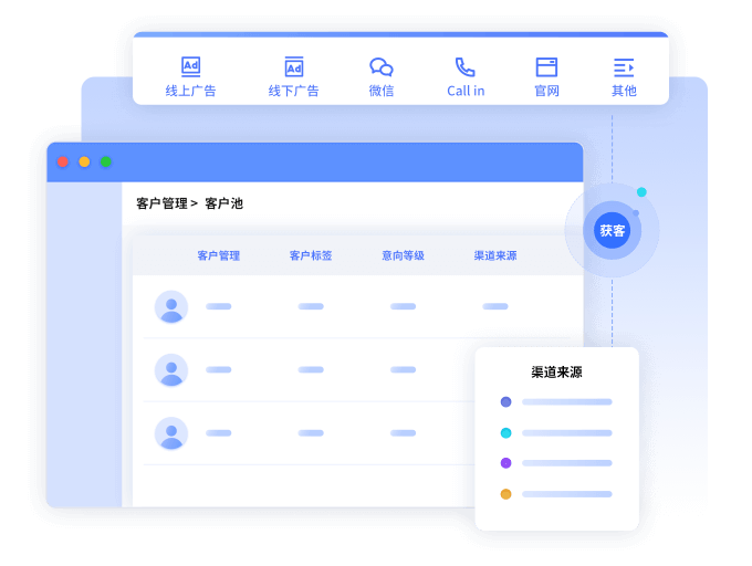电话、微信、手机、QQ、网站等各渠道来源的客户都可以统一导入客户池