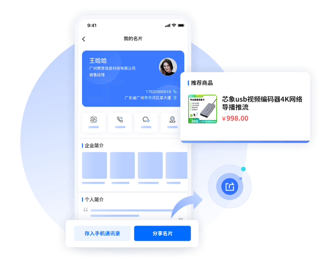 快速,完整地传递个人、公司、商品信息,展示自己和企业的专业形象